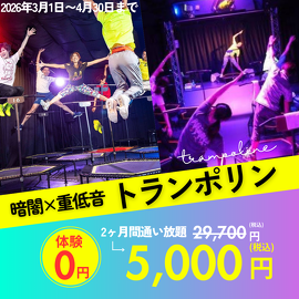 暗闇と照明が生み出す『非日常空間』で、トランポリンを使ったエクササイズ(運動)が行えるトランポリン専用フィットネススタジオです。