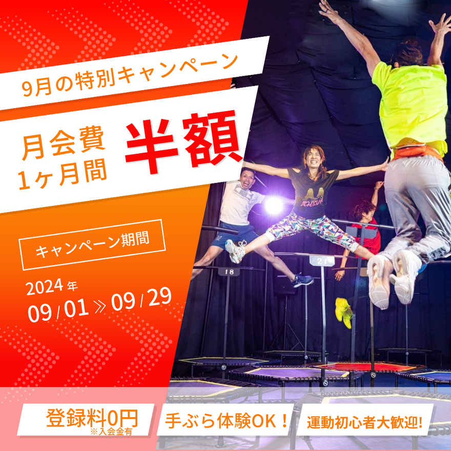 さらに会費などがお得になるこの機会に、ぜひ暗闇トランポリンフィットネスを体験してみてください!