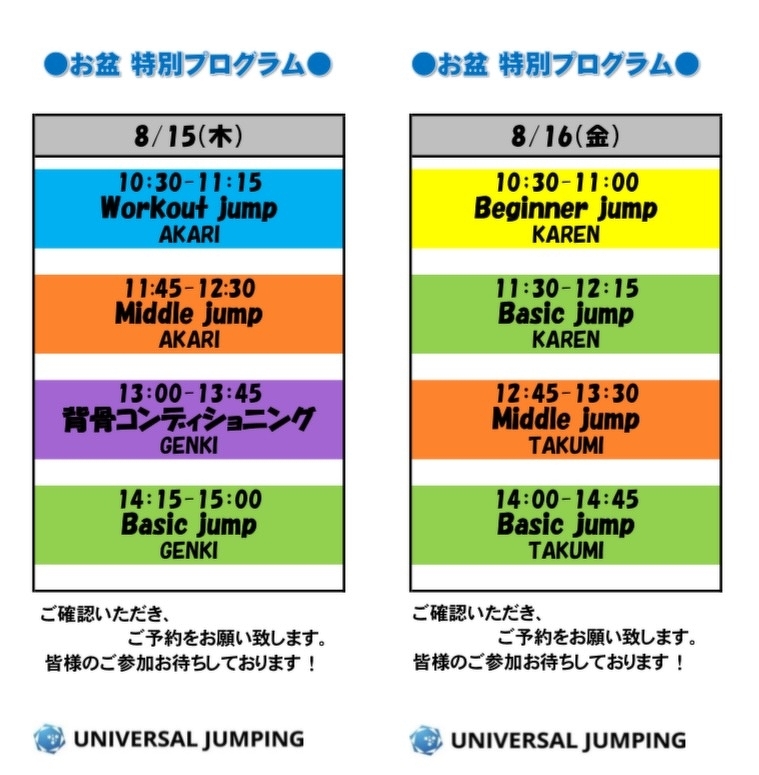 2024年8月のレッスンスケジュ―ルです。