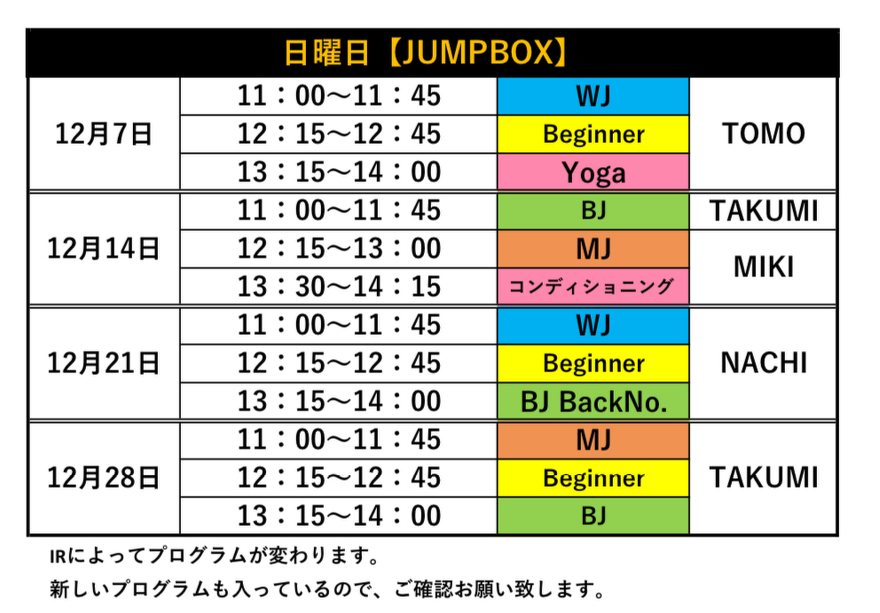 火曜日(第1.3.5週目) 14:00~14:45 担当:HIRO