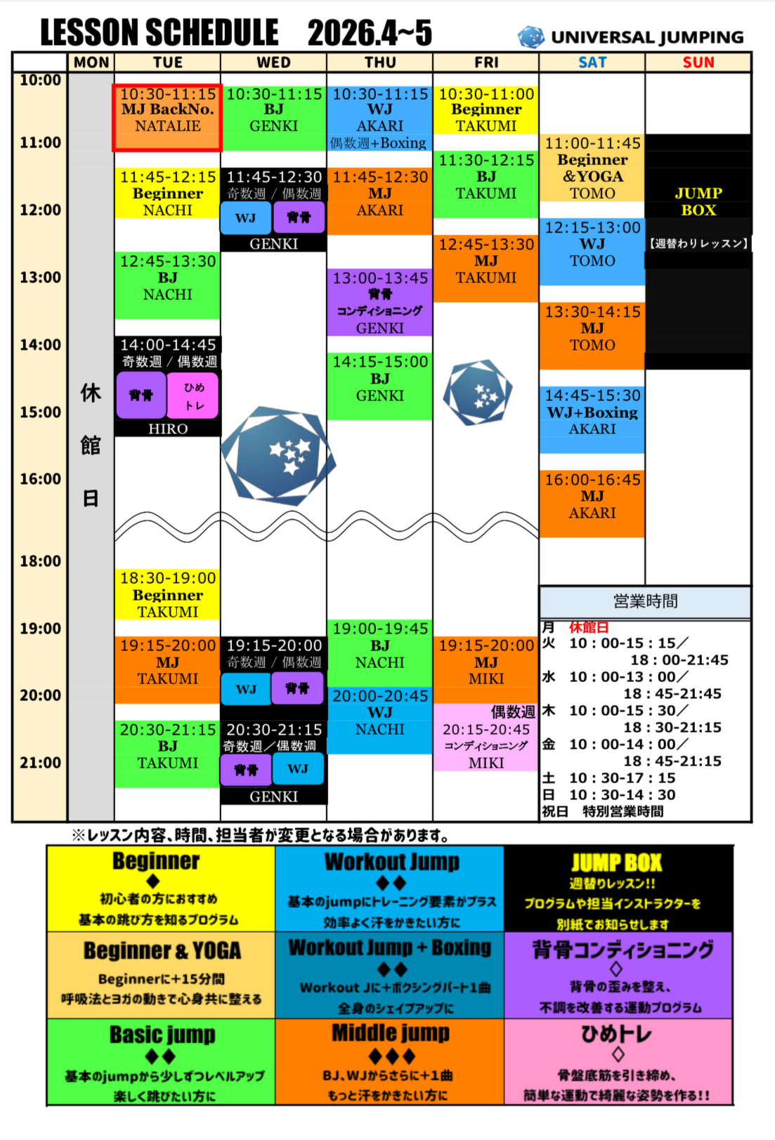 運動初心者でも行える内容のレッスンですので、ぜひ一度ご参加ください♪