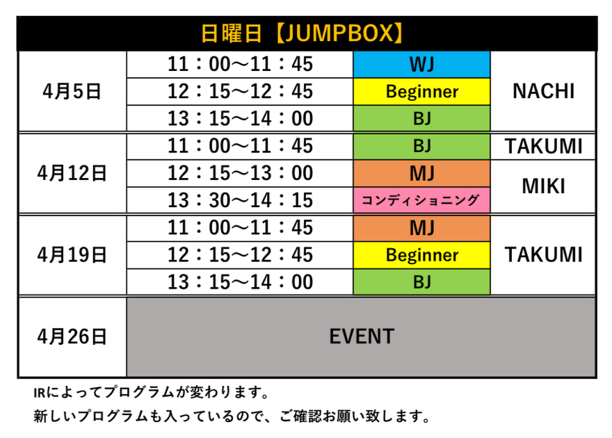 火曜日(第1.3.5週目) 14:00~14:45 担当:HIRO