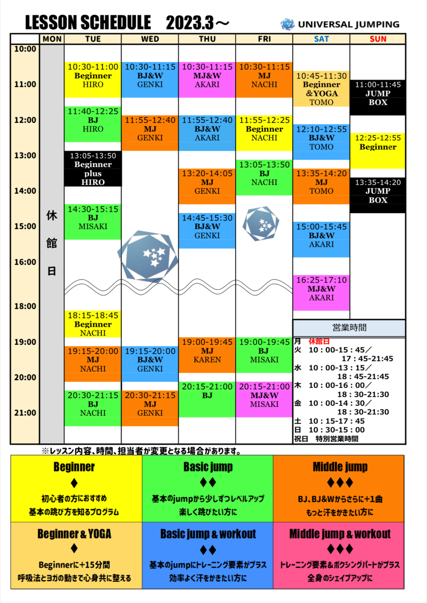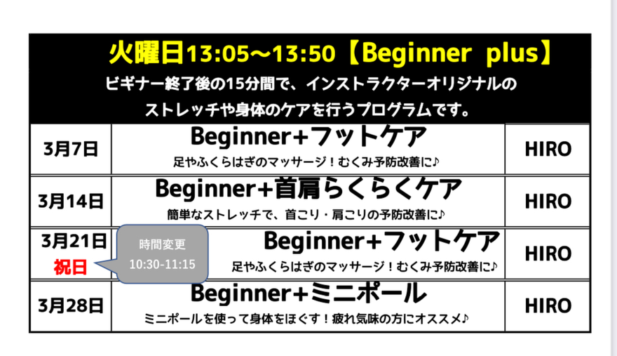 内容は週替わりとなっていますので、身体のメンテナンスのためにもお越しください。