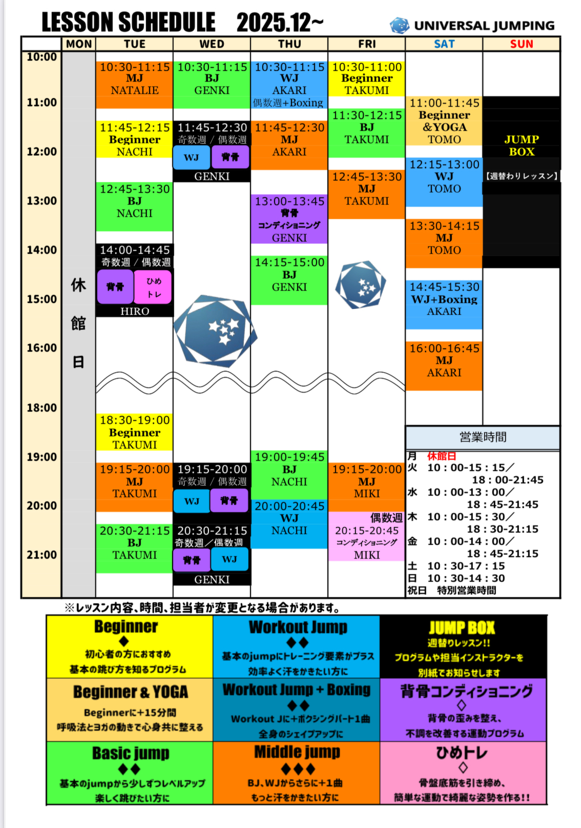 2025年12月のJUMP BOX(週替わりレッスン)