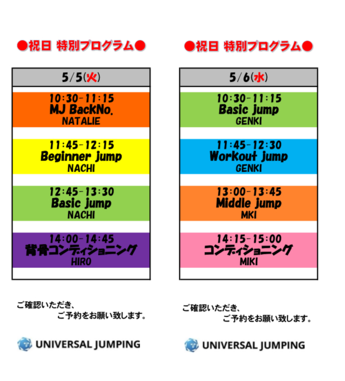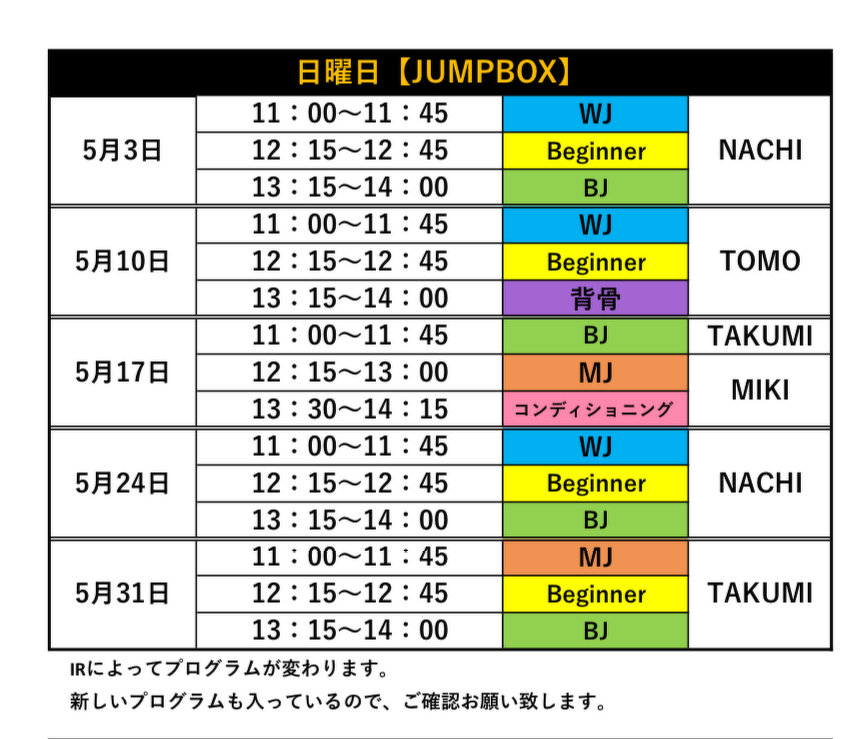 2026年3月のJUMP BOX(週替わりレッスン)
