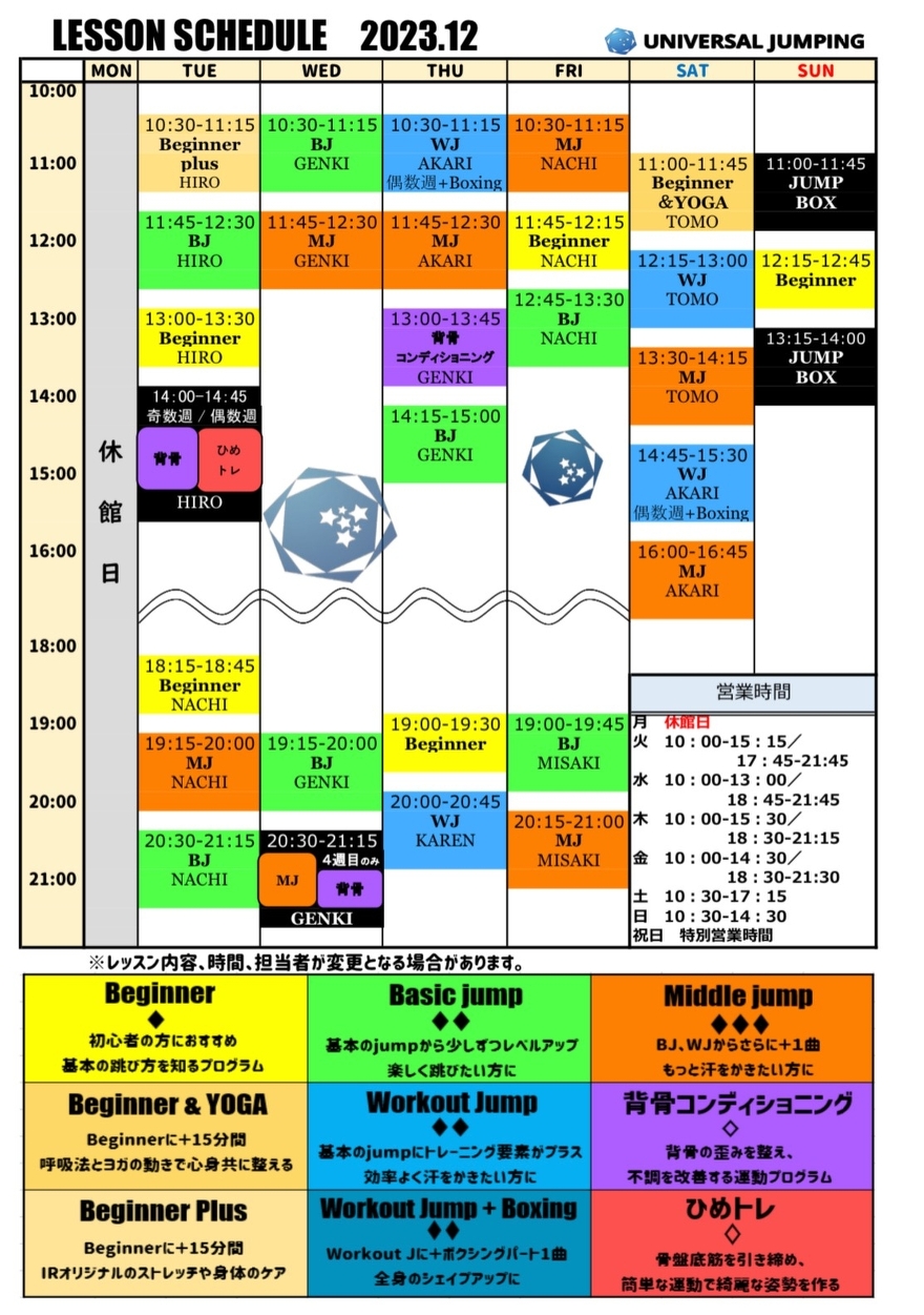 内容は週替わりとなっていますので、身体のメンテナンスのためにもお越しください。